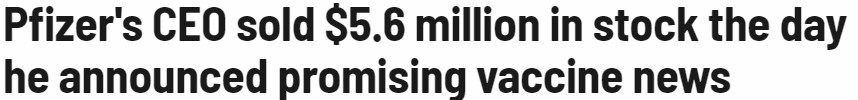 惊爆! 宣布疫苗有效当天 辉瑞CEO抛售大半股票 血赚3700万 疫苗已现副作用!