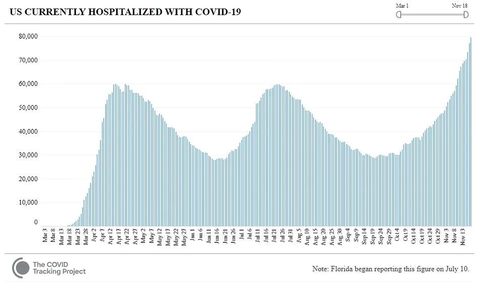 最近的住院人数——周三报道有超过79000人——每天新的病例不断打破美国的记录。