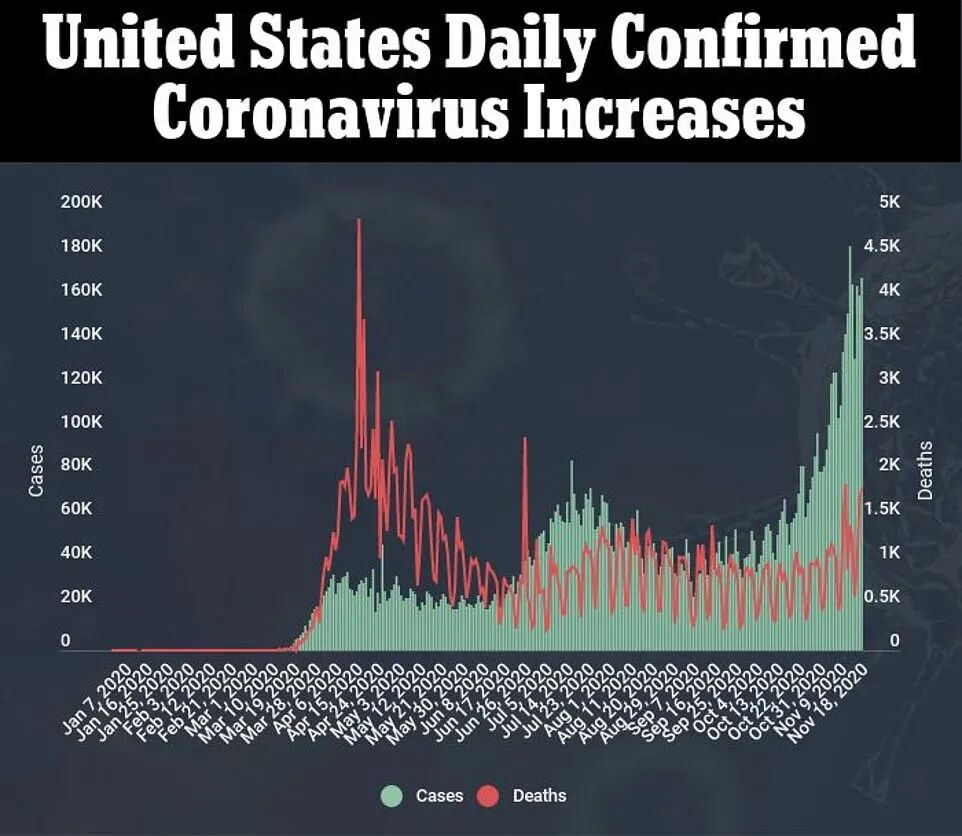 近期,随着气温下降,新冠病毒在美国呈现了一种爆炸式的猖狂状态。