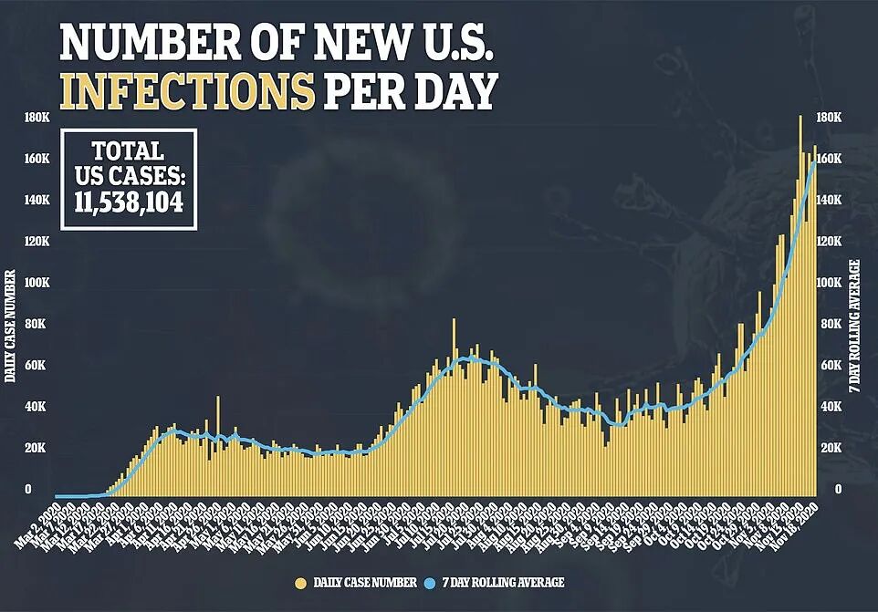 进入11月,美国的新冠疫情就好像变成了一个随时都有可能爆炸的炸药桶。