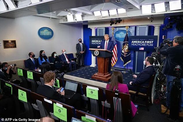 整场新闻发布会,川普怒气冲天,抱怨全天下都负了他:“大型医药公司对付我们,媒体对付我们,科技巨头对付我们。他们对我们不诚实。”