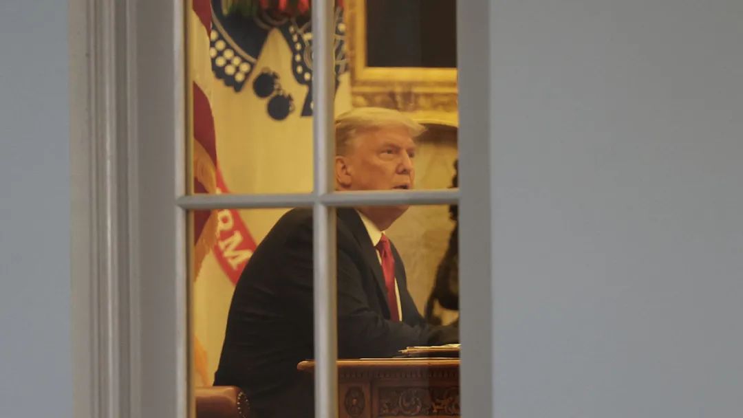 怼天怼地怼空气后,川普头也不回地离开了白宫简报室,没有回答任何记者的提问。