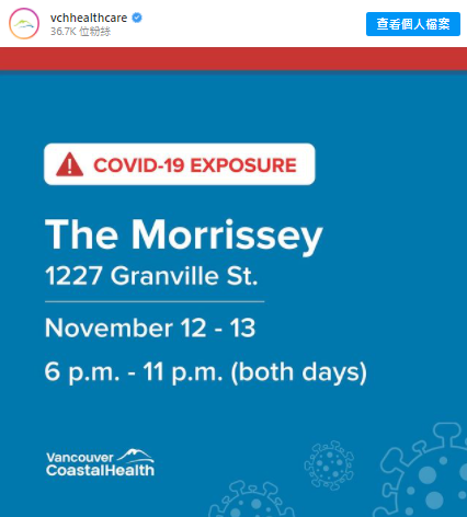 根据温哥华沿岸卫生局(Vancouver Coastal Health)公布的最新公告,位于1227 Granville Street的酒吧——The Morrissey爆出新冠疫情!