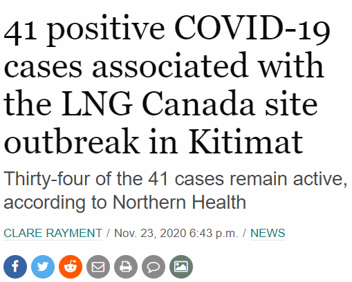 23日,BC省北部卫生局(Northern Health)透露,省内基蒂马特 (Kitimat)的天然气港口——LNG Canada Project site传出新冠疫情,41人感染!