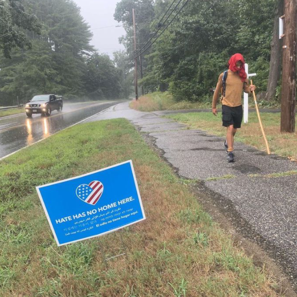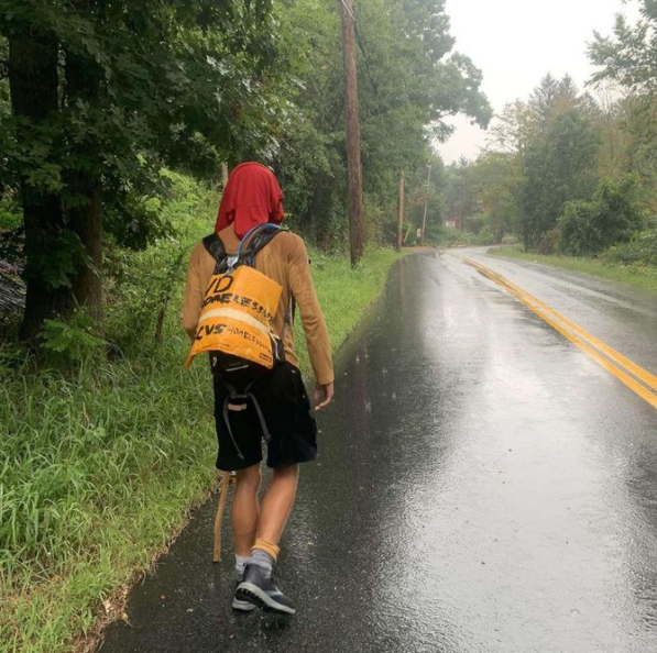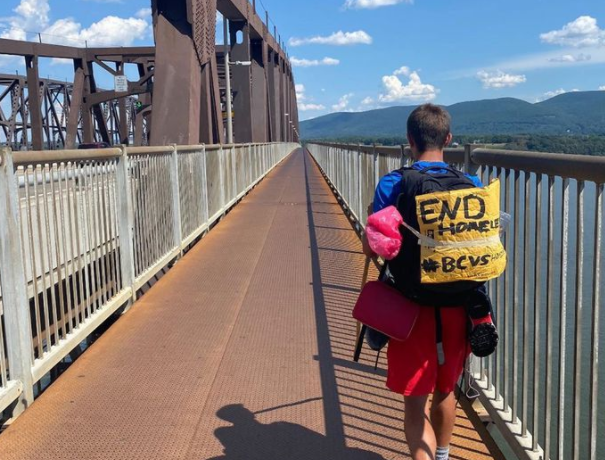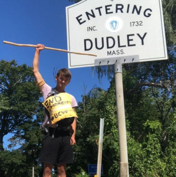 他决定徒步走到波士顿Newton校区,为全美无家可归者联盟筹集资金。