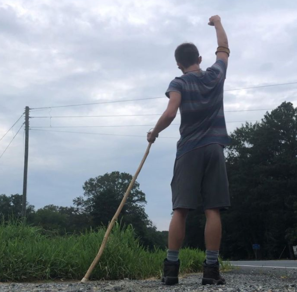 在接下来的16天中,Wayne一路向北,穿过玉米田和繁忙的公路,带着祖父送给他的自制手杖,上面还刻有祖孙两人的名字。