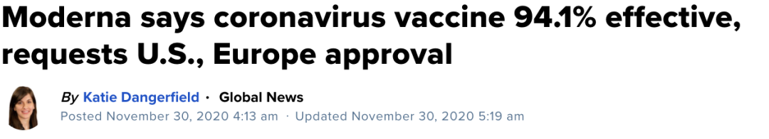 Moderna疫苗计划在今天向美国食品药监局(FDA)申请疫苗紧急使用,并同时向欧洲药品管理局(EMA)请求有条件批准,而加拿大也在最先获得Moderna疫苗的名单中!