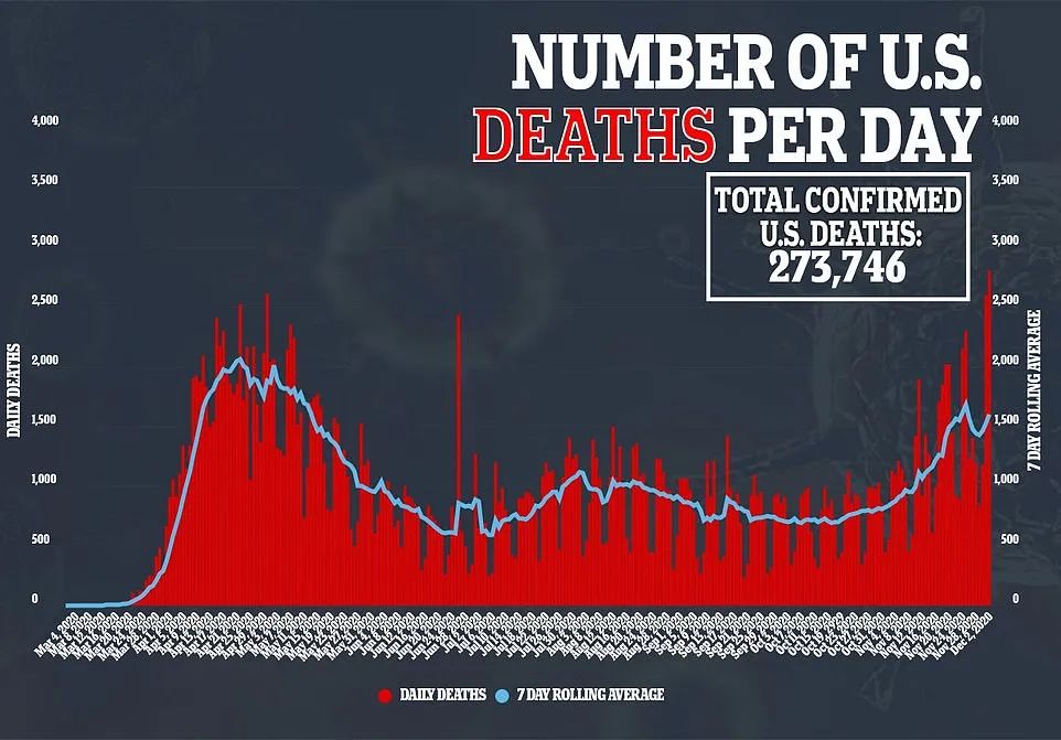 周三,美国有3156人死亡,这是迄今为止单日死亡人数最高的一天——也就是说,每30秒就有一人死亡。