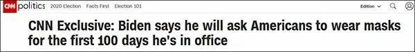 图源:网络 拜登先是提出了在明年上任后将会在全美推行“100天口罩计划”——