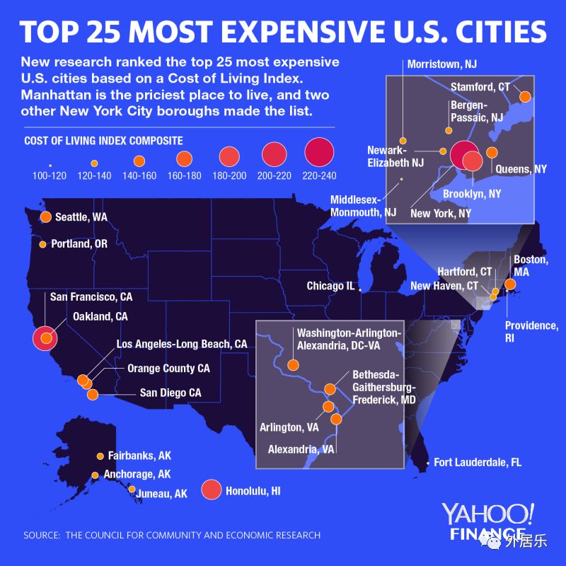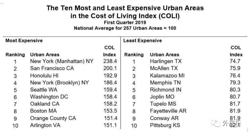 全美生活成本指数排名!最贵城市大多集中在东岸和加州...
