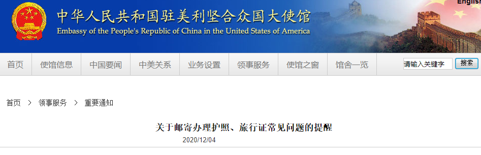 疫情严重!驻美使馆:邮寄办理护照、旅行证...问题解答