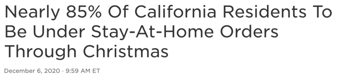 时间:从昨天周日晚,美国时间12月6日11:59,将开始新的居家封锁,直至圣诞假期,至少3周