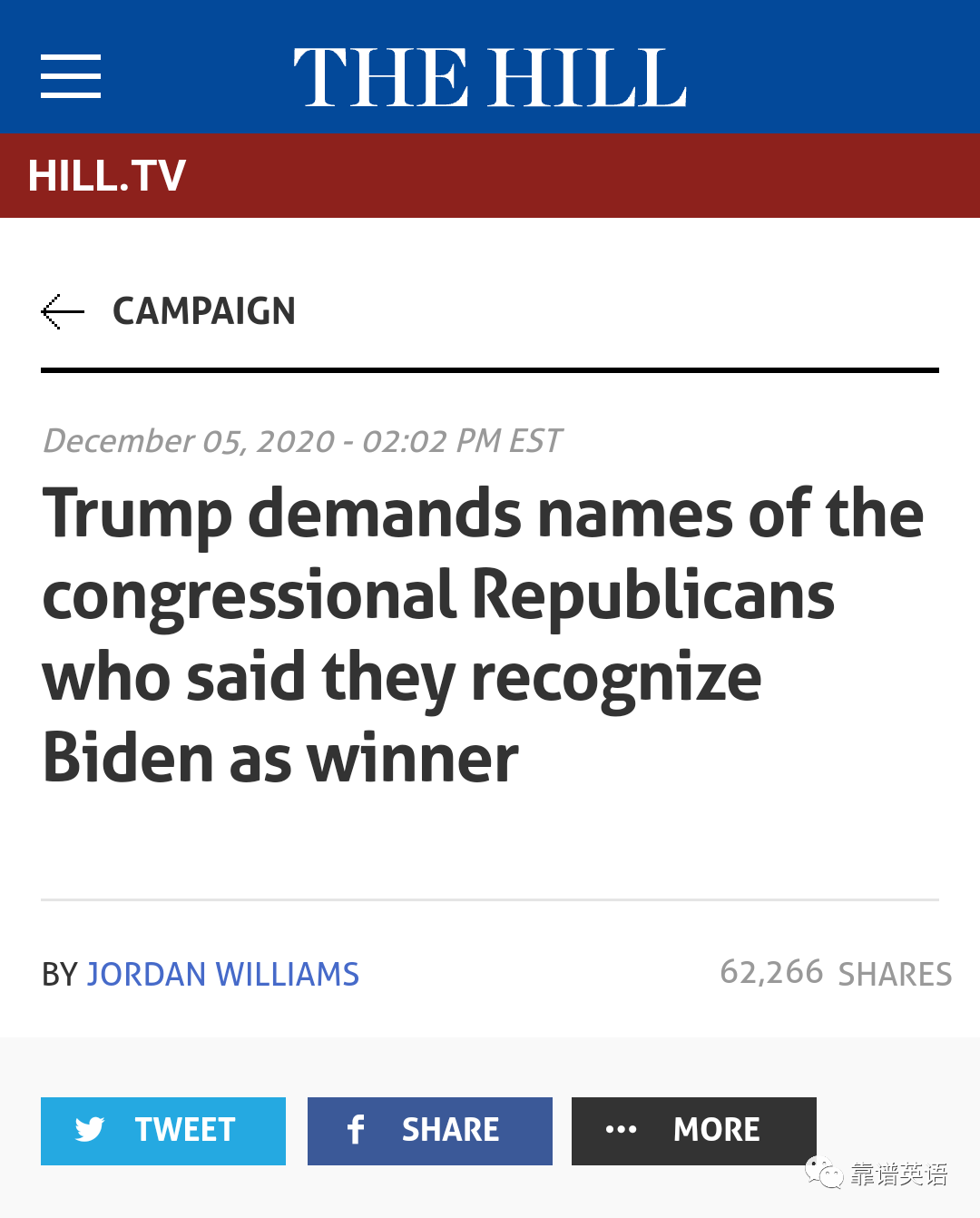 《国会山报》:川谱要求知道承认拜登获胜的国会共和党人名单