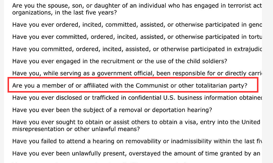 中国公民在填写美国B1/BS签证表时,有一项要求是填写党派信息。如果你是党员,在签证政策收紧之后,会对你的签证和停留时间进行限制。
