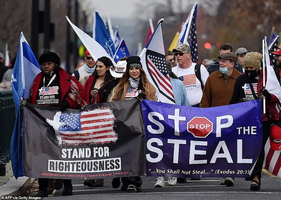 游行抗议并没有一夜结束,周六,更多的美国人走上街头,发起“停止窃选”的大型游行集会活动。
