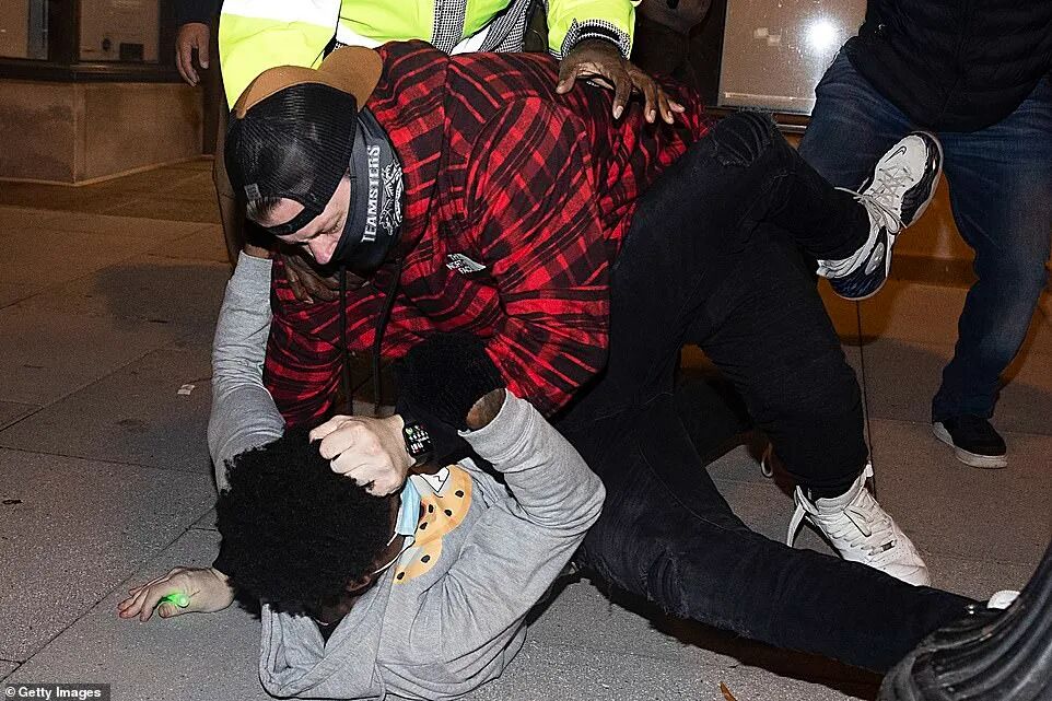 也有反抗议者夹杂其中,很开双方就扭打成一团。