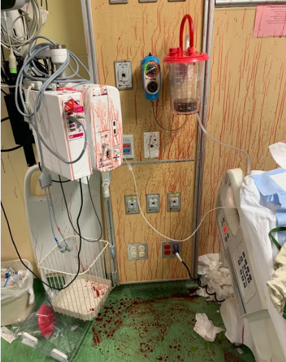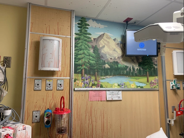 斯蒂芬妮表示,当医生给儿子的颈部更换叶克膜导管时,佩顿胸部的淤积血液猛烈地喷射到墙上,溅得到处都是,就连心脏外科医生也全身是血,但他仍在继续工作。