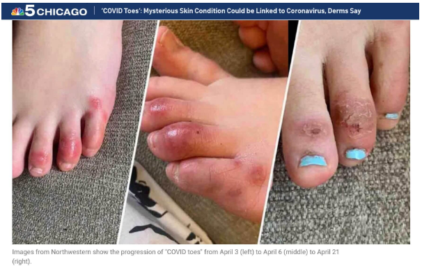 与此同时,他的手、脚指甲发青泛黑,这是不少儿童新冠患者的症状之一。