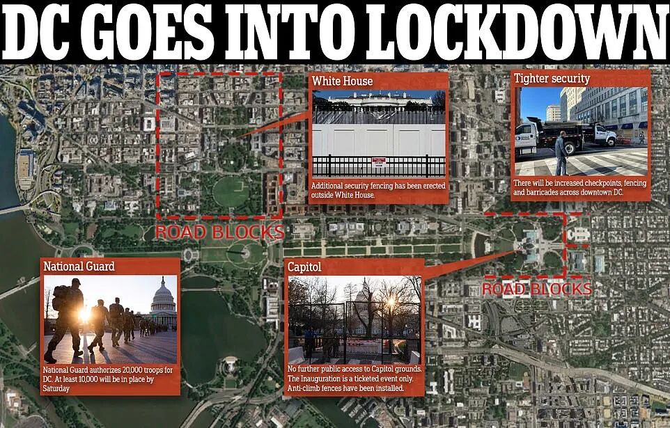 一名高级国防官员表示,参加就职典礼的国民警卫队已经开始抵达。计划华盛顿D.C.还将有一次与军队的全面演习。这位官员说,司法部指挥中心将更加强大,几乎每个内阁部门和执法机构都将参与其中。