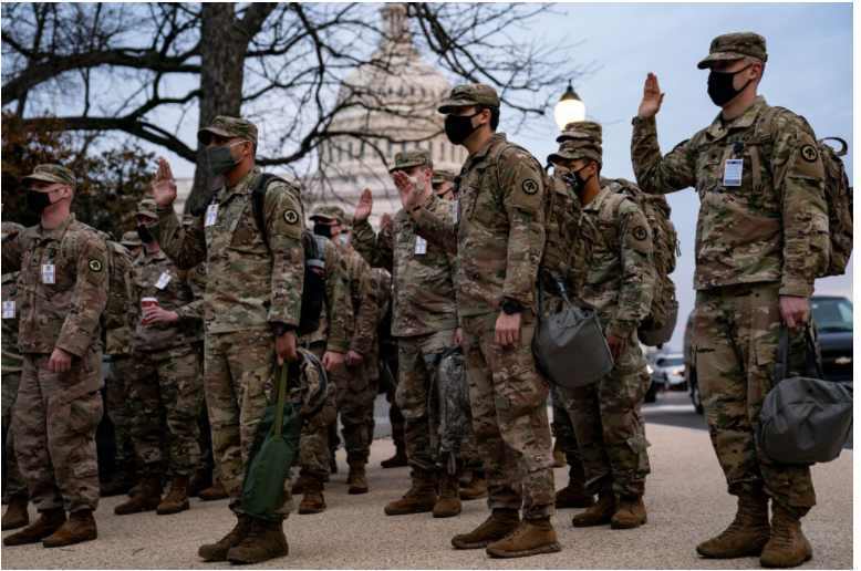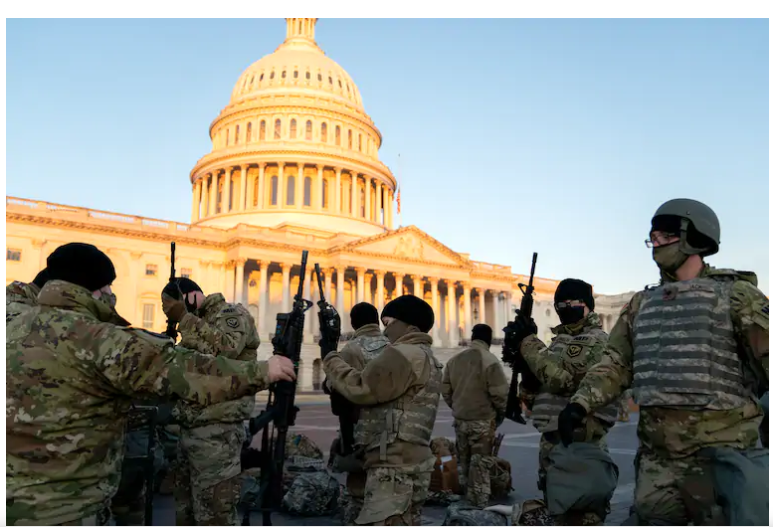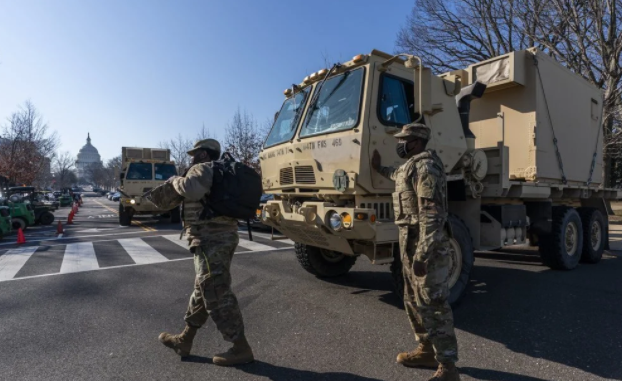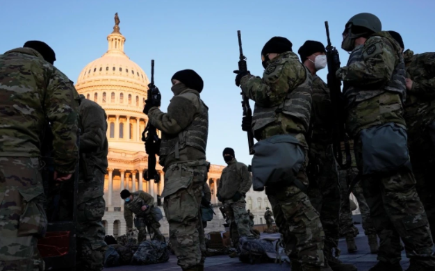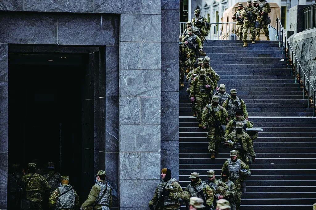 全美50个州都加强了警力,1月17日据报道,约有2.5万名国民警卫队士兵抵达首都华盛顿。