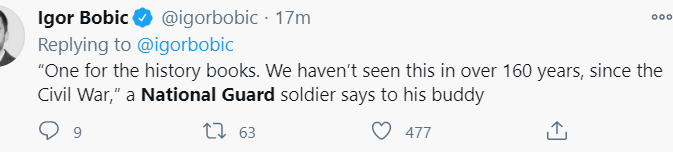 一名国民警卫队士兵对他的好友说:自南北战争以来,已有160多年没有见过这种情况了。