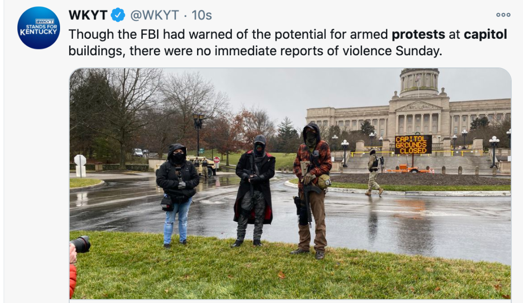 - 武装抗议计划于1月17日至20日在华盛顿D.C.的美国国会大厦举行;
