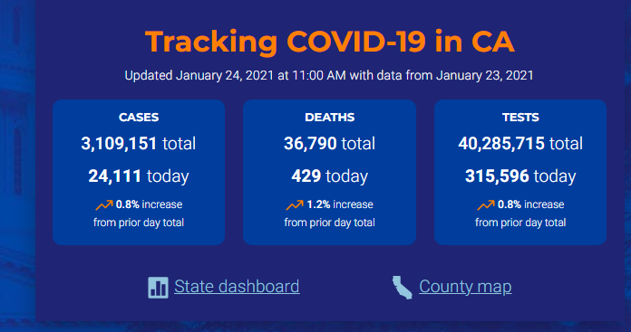 加州最近数星期都有破纪录高的感染人数,但确诊病例近期亦已下降,ICU 扩容到23%。公共卫生专家认为这和假日季结束,全国停止了大范围"串门"和聚会有关。