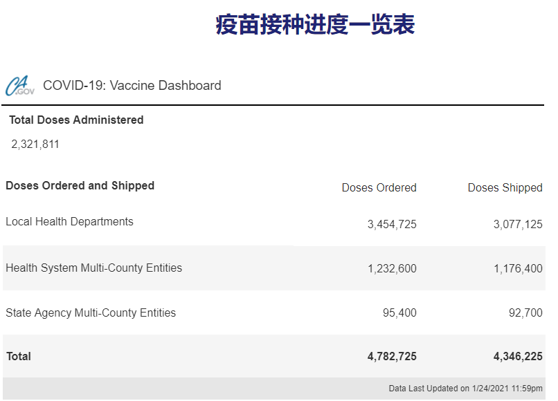 目前湾区疫苗预约以及各县疫苗接种,分发情况,请参考加州官方中文版:https://covid19.ca.gov/zh-hans/vaccines/