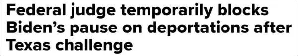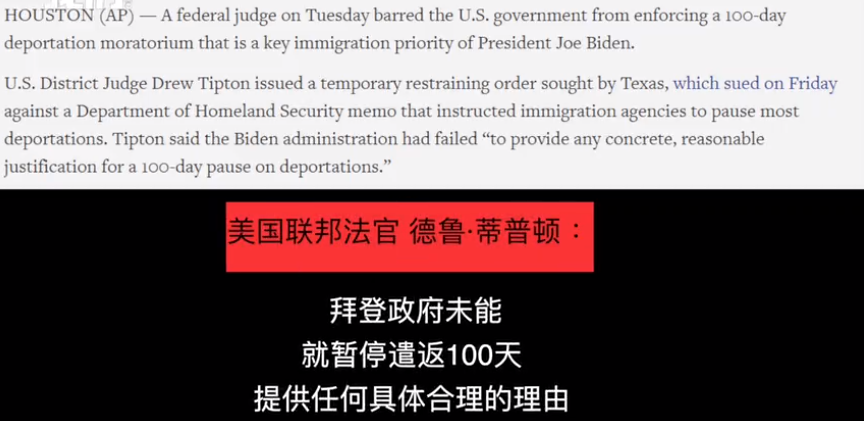 另据路透社27日解释称,这是蒂普顿对拜登政府发出的一项为期14天的临时限制令,该命令将阻止拜登政府的这项移民新规在全美范围内实施。