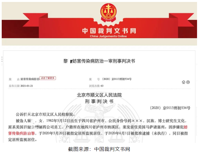 而前不久,她也因为自己的行为被北京顺义法院以涉嫌《妨害传染病防治罪》入刑。