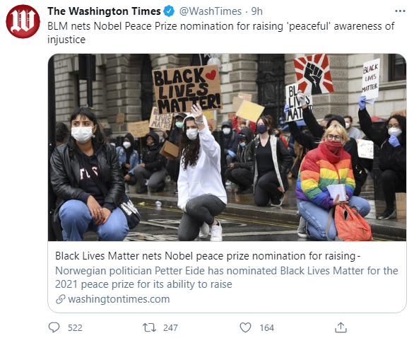 震惊世界!拜登下跪,“黑命贵”提名“诺贝尔和平奖”...