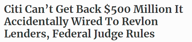 然而,不知道因为填错数字还是什么别的原因,花旗银行最终汇出了8.93亿美元。而且这不是露华浓的资产,而是花旗银行自己的资金。