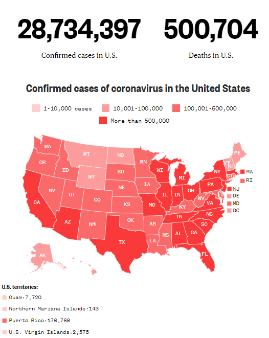 震惊!美国因新冠病毒死亡人数突破50万人,相当加州首府...