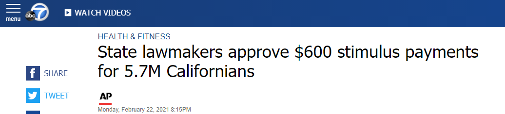 敲定了!加州570万人可领600元纾困金 小型企业可领20亿的25...