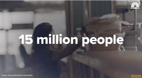 餐饮业是美国的支柱产业之一,雇佣超过1500万人,为经济贡献1万亿美元,占GDP的4%,虽然不算大不能倒的行业,却如同末梢毛细血管,遍布经济活动的点点滴滴,多而不能倒。”