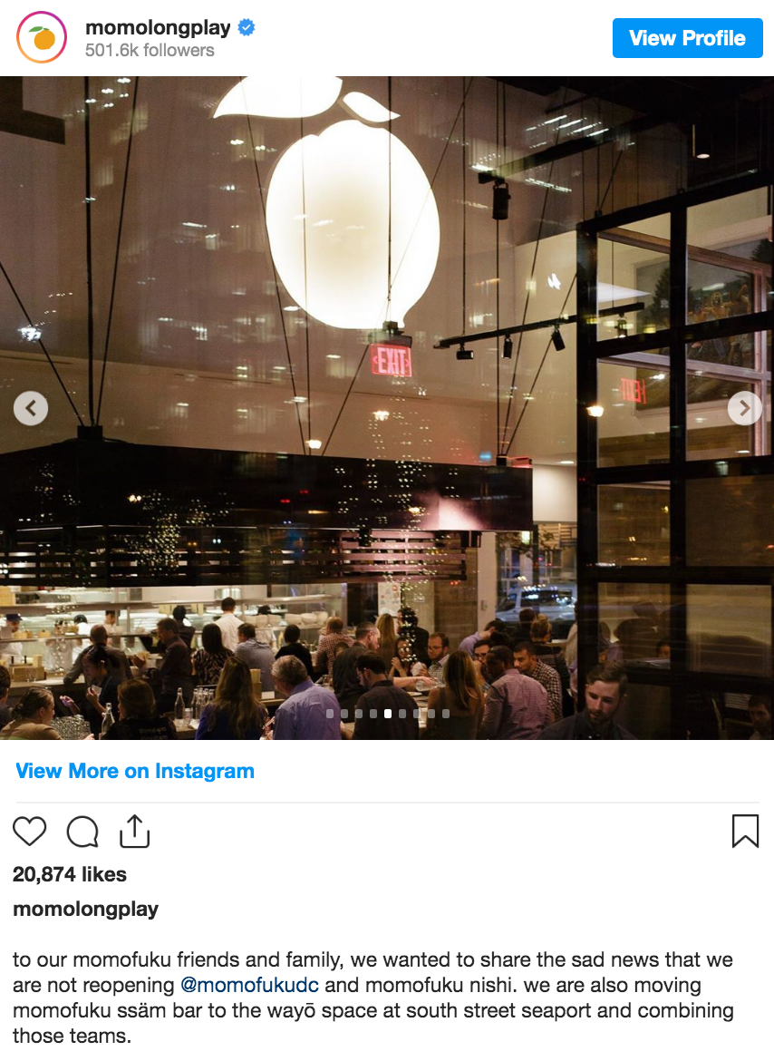 而此前,纽约著名“福桃帝国”亚裔创始人David Chang,也非常无奈,亲手给位于曼哈顿Chelsea的旗下餐厅Nishi封上封条。