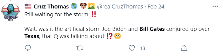 3.得州的雪是比尔盖茨和拜登政府共谋的结果。