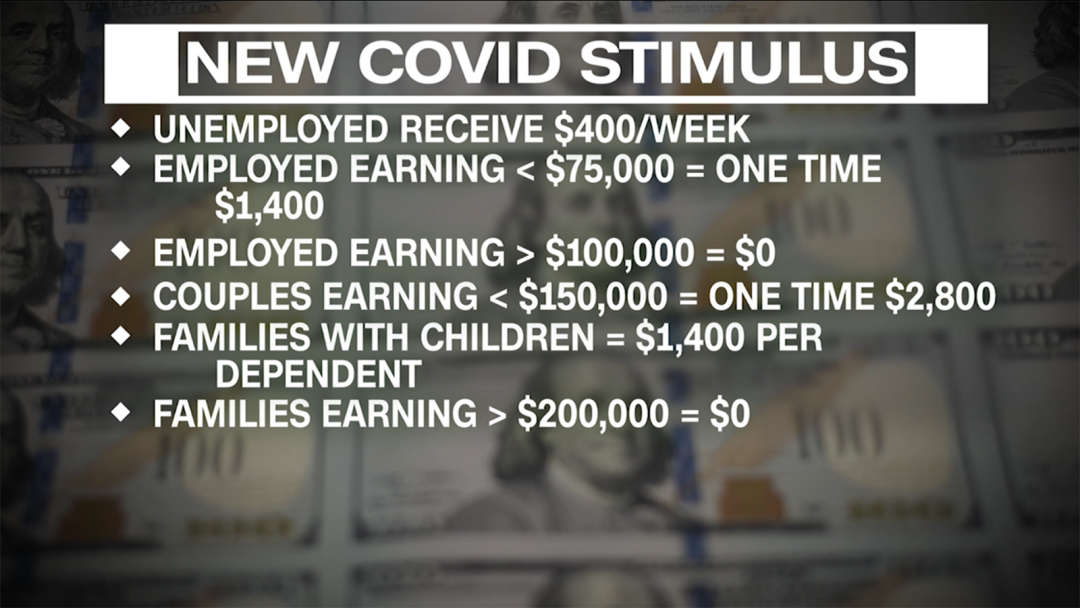 - 向大多数个人支付1400美元,向每位受抚养人支付相同数额。收入达到7.5万美元时,支票金额会逐渐减少,而收入达到10万美元时,不会收到支票;