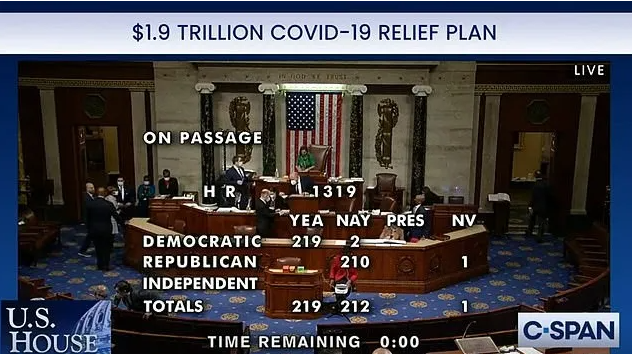 2月27日报道,美国国会众议院在本周六凌晨投票通过了1.9万亿经济救助计划,这是拜登总统的第一个重大立法提案。
