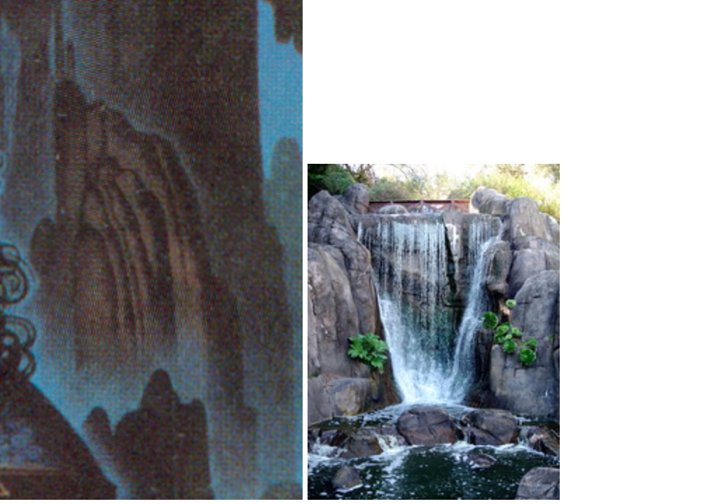 石头拱门和嵌入式喷泉都非常直接地取自意大利文化花园的石雕。
