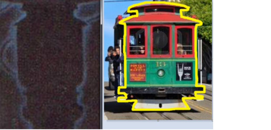 图中桌子底柱的轮廓非常类似于缆车的轮廓,缆车是旧金山的标志性符号之一。