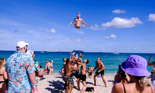 ▽2021年3月5日,佛罗里达州劳德代尔堡虽然还有疫情,但在海滩上,人们依然在庆祝春假。 图片来源:路透社