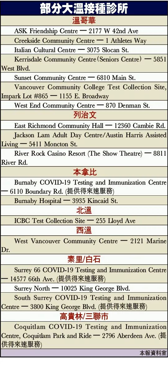 BC疫苗预约热线被打爆,公布各区疫苗接种点,卫生厅长:...
