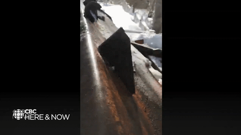 视频中,科里跳上引擎盖,试图挡在铲雪车面前不让房东前进,但似乎无济于事,此时雷格尔完全不听劝。