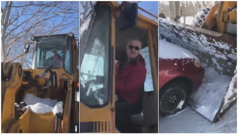 就在周三上午,忍无可忍的雷格尔开着铲雪车带着一名司机就找上了门,刚和科里说了几句就吵起来,暴脾气的他直接将科里停在门口的车铲起来推着跑。