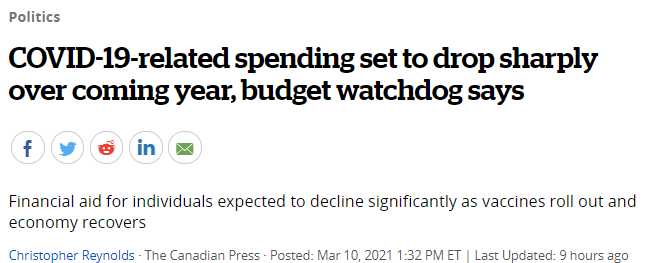 报告称,随着加拿大从新冠大流行紧急状态下恢复,与COVID-19相关的联邦支出将暴降86%!