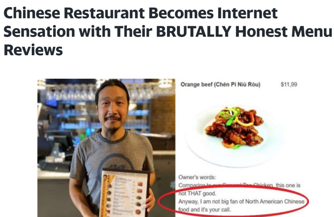 美国一家平淡无奇的中餐馆,却因华人老板“过于诚实...