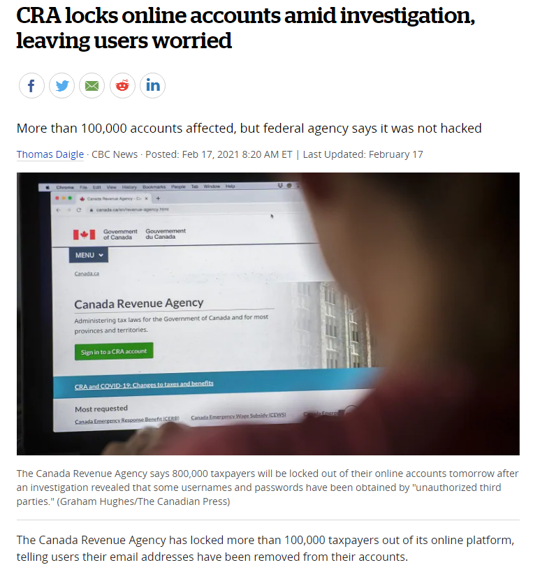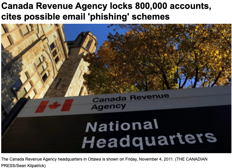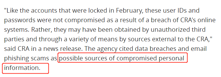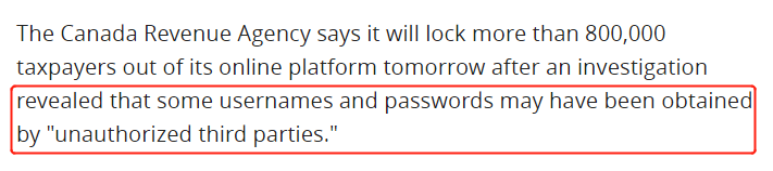 加拿大税局:封80万纳税人网络帐户!疑用户密码被盗
