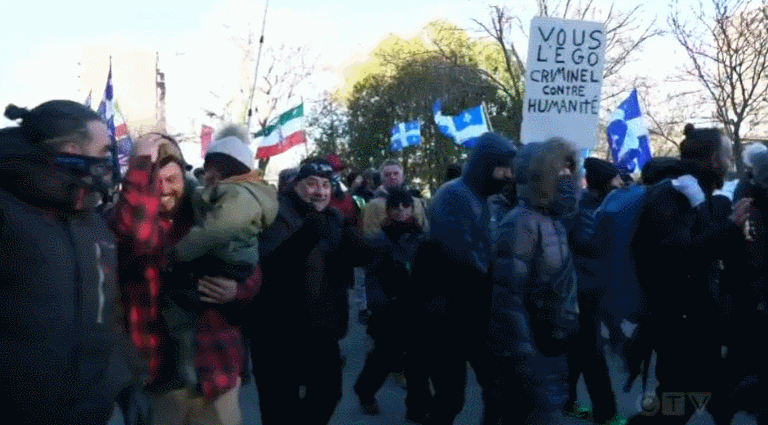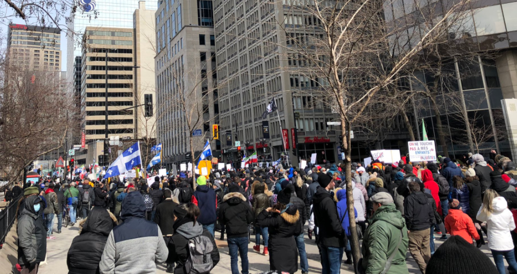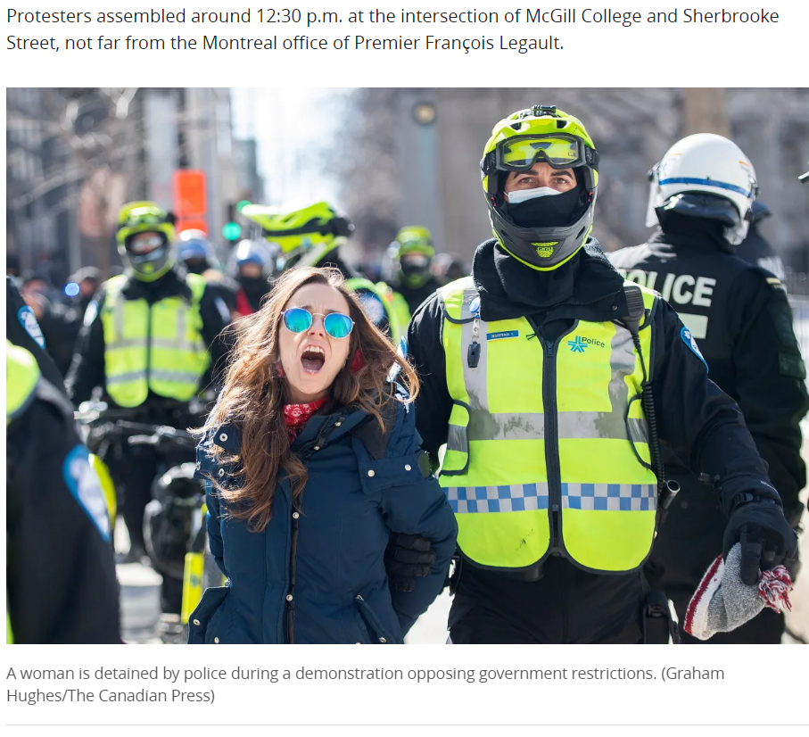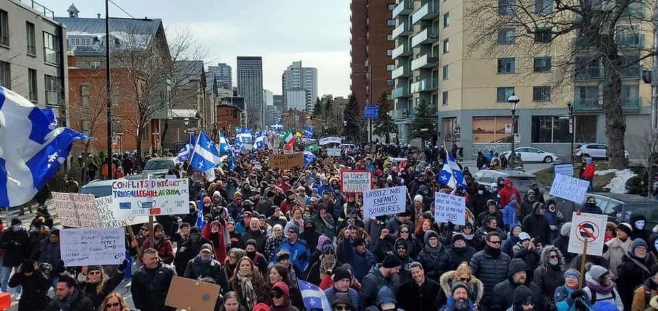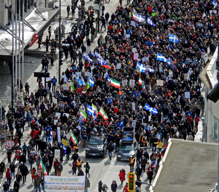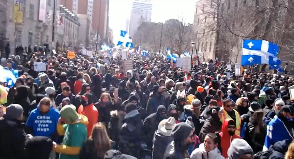 疫情惨重的魁省蒙特利尔,无数人高喊“自由”口号冲上街头,抗议政府封锁政策。