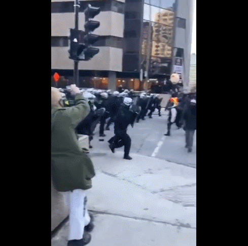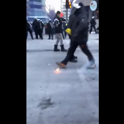 人群中的几名“勇士”,甚至开始扔石头打警察,警察使出了催泪弹和胡椒喷雾予以回击,场面一度失控。